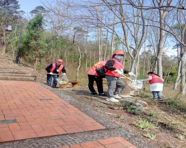 上午9点,近20名职工志愿者齐聚炮台山公园,沿着步行道对路边的垃圾进行捡拾清理。活动中,志愿者们拿着夹子、扫帚、撮箕等工具,对路边的烟头、纸屑、包装袋以及白色垃圾进行了清理。红马甲与红帽子构成了炮台山沿路上一道亮丽的风景。