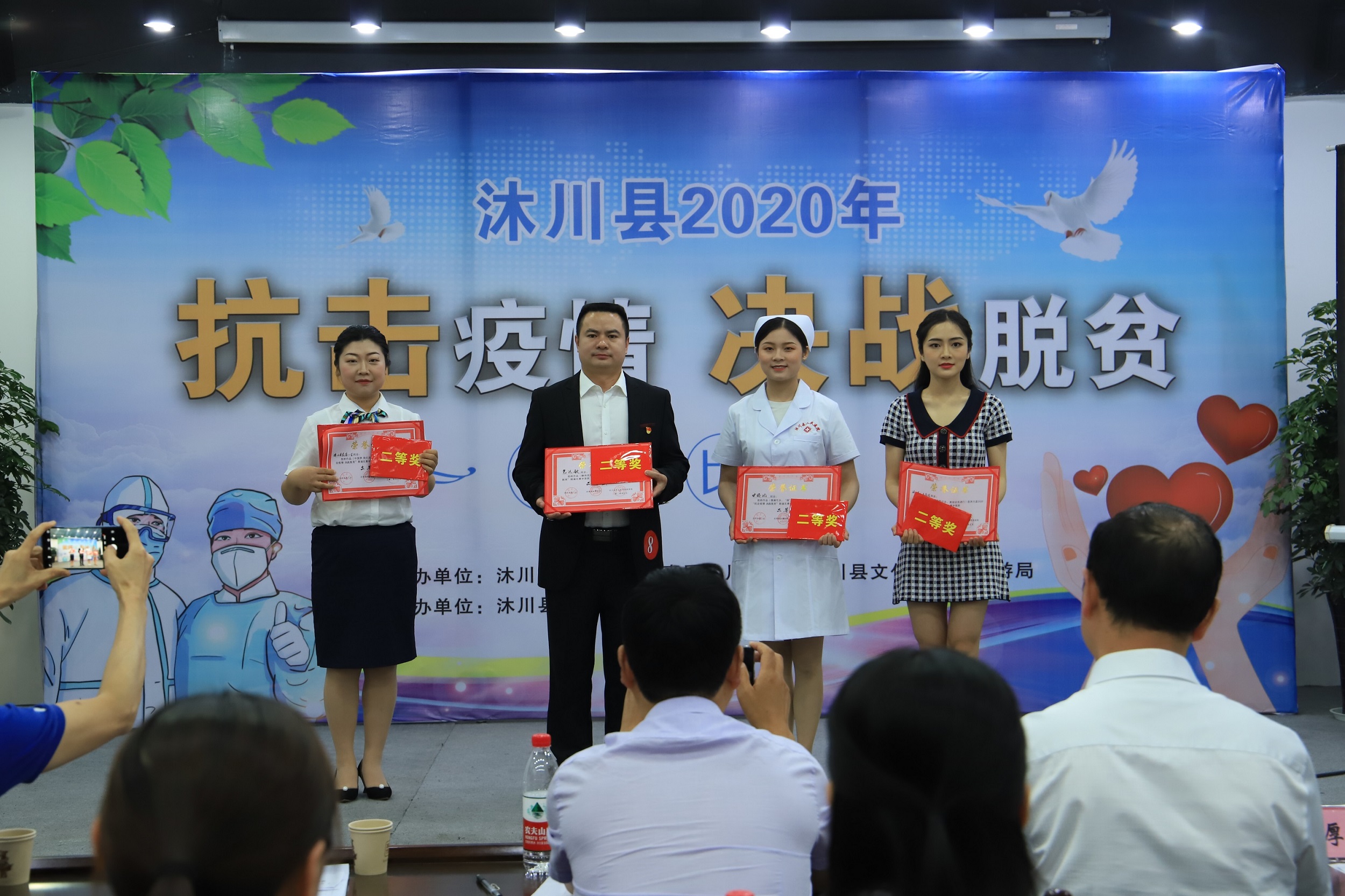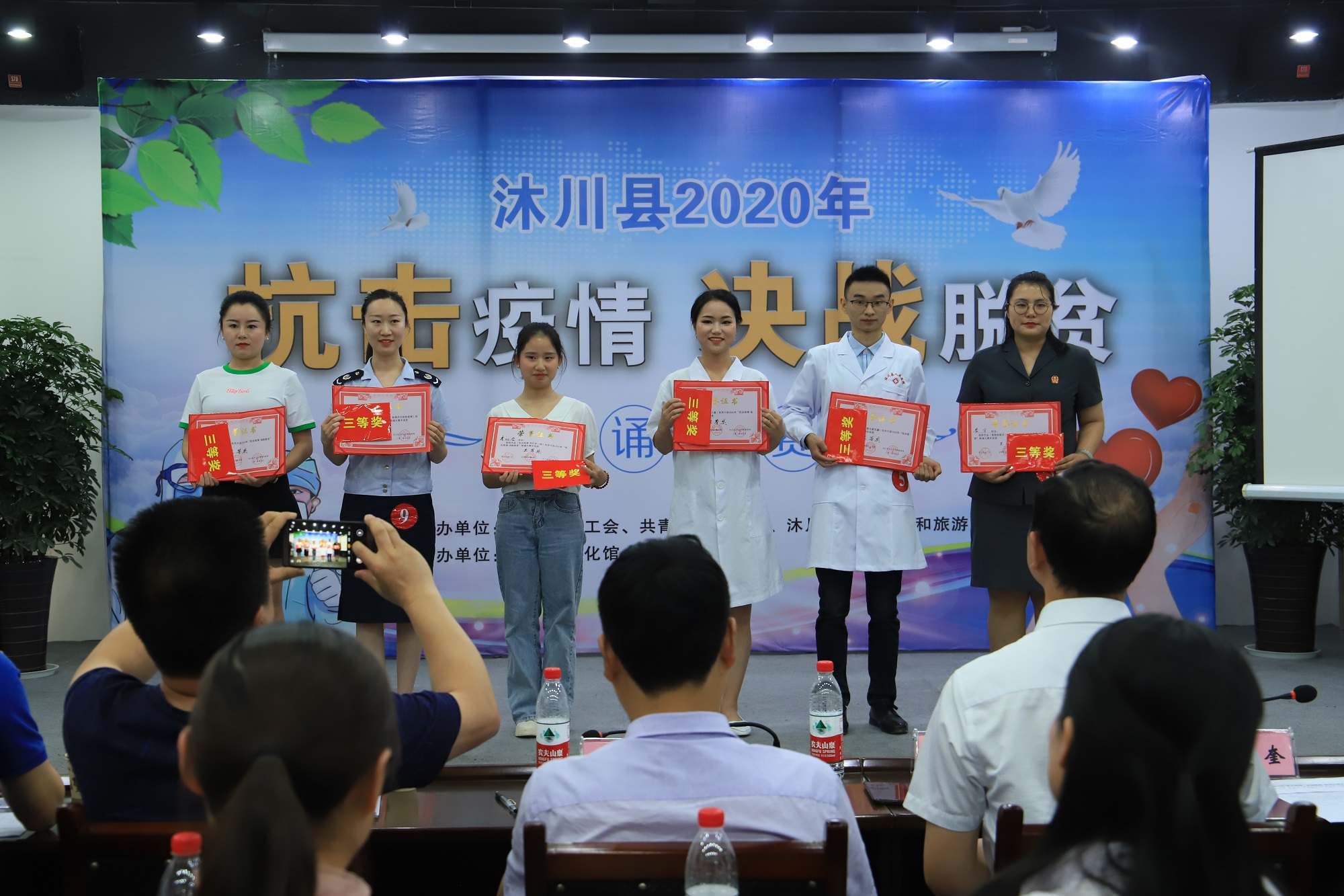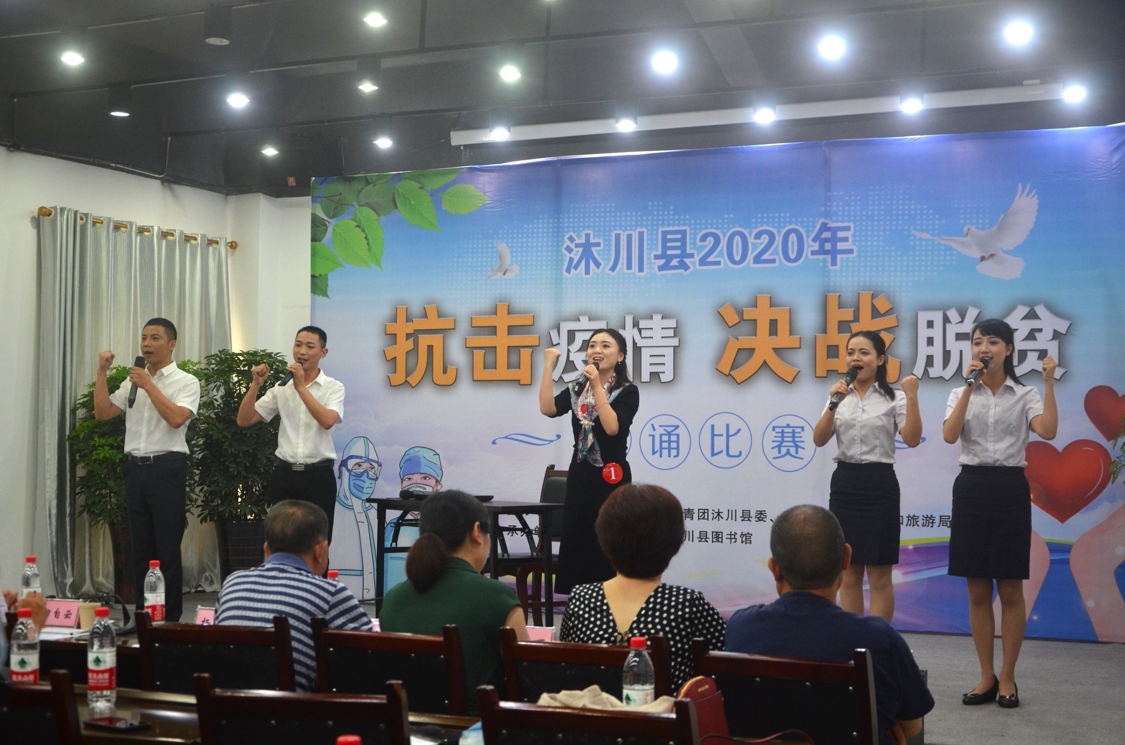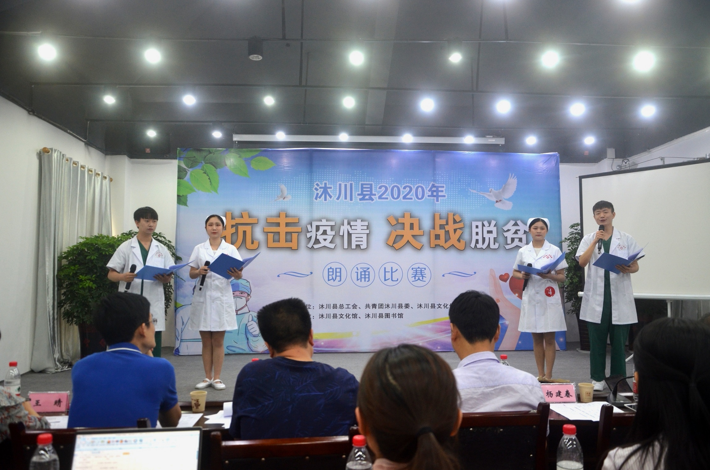 5月14-15日,沐川县总工会、共青团沐川县委、沐川县文化体育和旅游局在全县联合举办的以“抗击疫情决战脱贫”为主题的朗诵比赛在沐川县美术馆举行。来自全县乡镇、机关和医院、学校等企事业单位的广大干部职工和青年踊跃参与,纷纷施展各自才智,用激情讴歌时代,用智慧凝聚力量,共同唱响抗击疫情,决战脱贫的主旋律。县委常委、县总工会主席杨建春参加活动并讲话。