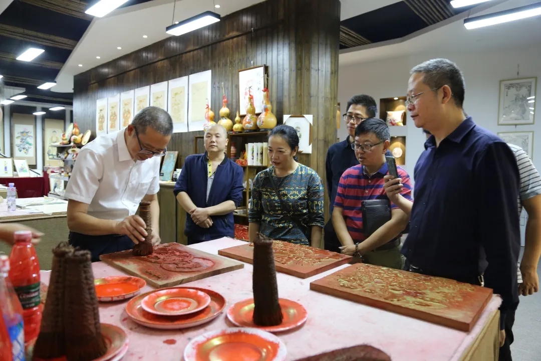 在夹江县年画研究所,黄国兵一行认真察看“张荣强劳模和工匠人才创新工作室”建设情况,饶有兴致地体验夹江年画制作,对工作室成效和夹江年画精湛的传统工艺赞不绝口。他指出,工作室要带好头,培养梯次人才,加强年画创新和推广交流,推进夹江年画传承与发展。