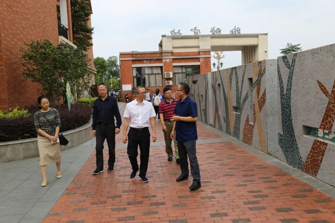 黄国兵(左三)调研夹江外国语实验学校工会建设