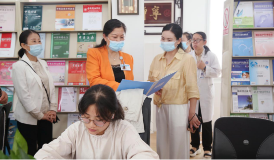 张慧书记一行先后参观了职工培训中心、抗疫书画展览区、职工书屋、心灵驿站、神经内科最美值班室、营养食堂、职工舞蹈排练区、韩宇劳模创新工作室、院本部以及城北员工食堂,给予了高度的评价。考察组在神经内科就“最美值班室”活动开展情况进行了实地查看,神经内科护士长佐小丽分别介绍了值班室氛围打造、职工文化建设等方面工作;眼科汤静副主任详细介绍了“韩宇劳模创新工作室”以劳模文化推动团队建设、学科建设的发展历程及取得的成效,张慧书记对眼科以韩宇劳模为带头人,引领学科创新发展,将劳模精神融入科室文化,形成了“带领一个团队、引领一个学科、服务一方患者”的鲜明特色高度点赞,充分肯定劳模创新工作在乐山市人民医院党委的领导下,以党建为引领、学科建设为根基,创新驱动发展,取得了丰硕成果。