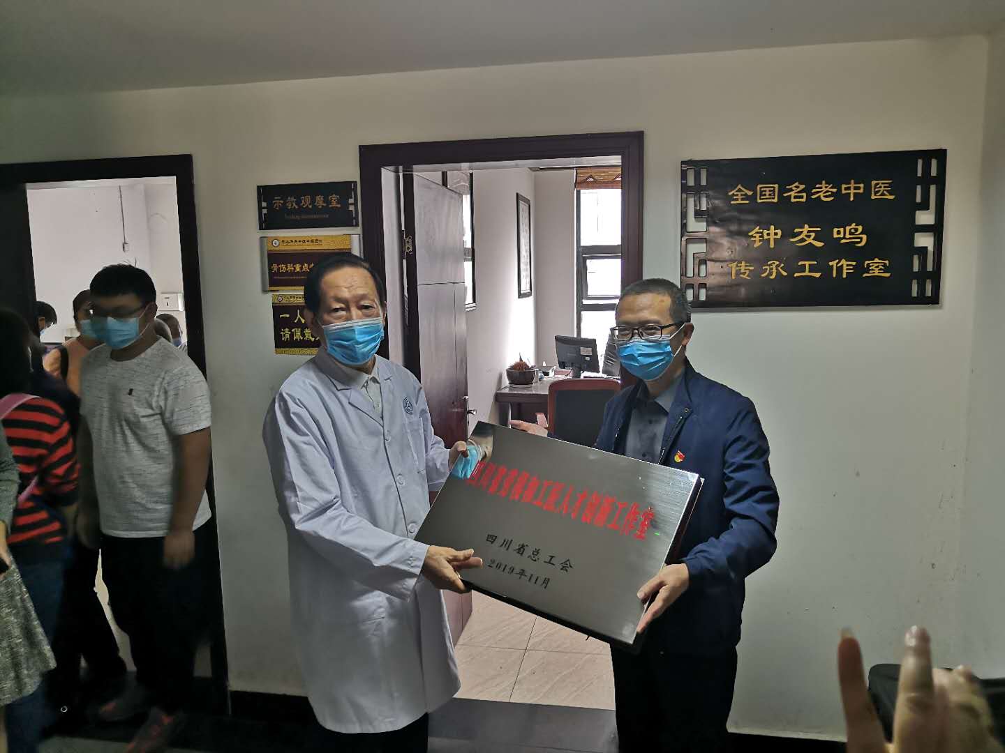 9月30日,市总工会党组书记、常务副主席黄国兵一行来到市中区中医医院,为钟友鸣劳模创新工作室颁发了“省级劳模和工匠人才创新工作室”荣誉奖牌。
