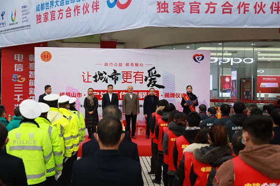 2020年12月18日上午,峨眉电信携手峨眉山市总工会建设的首个户外工作者驿站在市电信公司一楼举行揭牌仪式,市总工会主席吴利平、乐山电信公司总经理李华良、市总工会党组书记、常务副主席熊晚霞、峨眉山电信分公司总经理游世友出席。快递员、外卖送餐员、交警、环卫工人等近百名户外工作者代表参加了揭牌仪式。