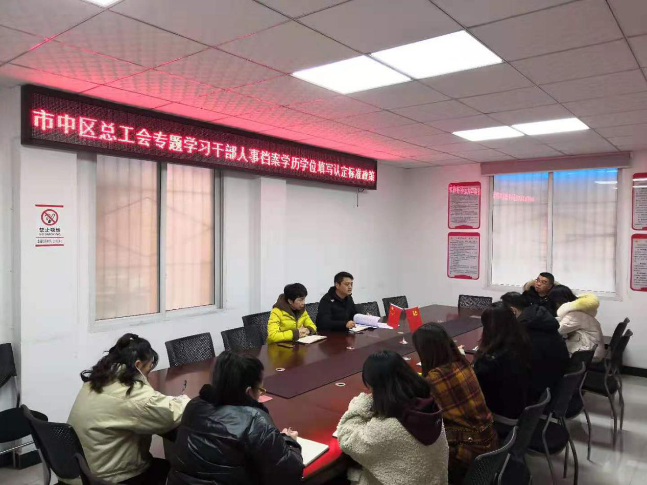 12月22日,为提升干部档案管理能力水平,区总工会常务副主席朱冰带领全体机关干部职工专题学习了《关于干部学历学位填写认定标准的通知》《干部档案专项审核政策解答及操作指南》,对档案管理工作中存在的问题进行了现场解答与交流,确保政策熟悉、标准明确、操作规范,并结合工会实际工作如何贯彻落实进行了安排部署。