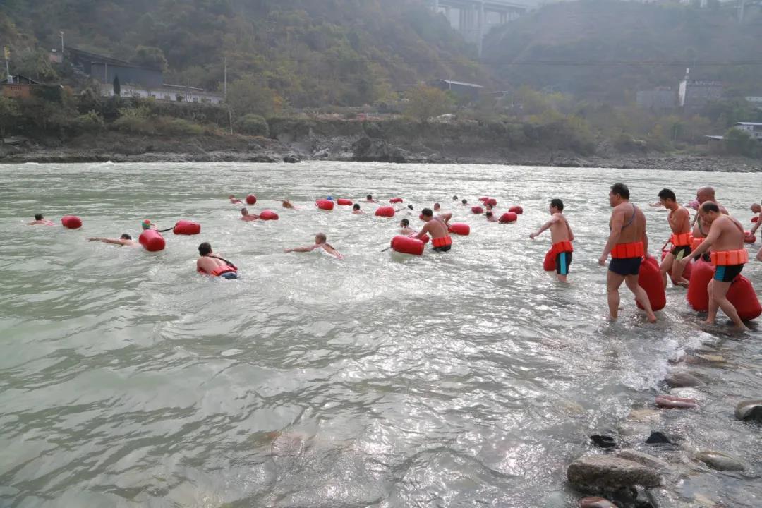 金口河区总工会和金口河区冬泳协会联合举办大渡河竞渡比赛