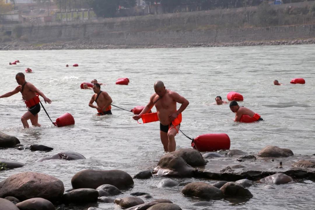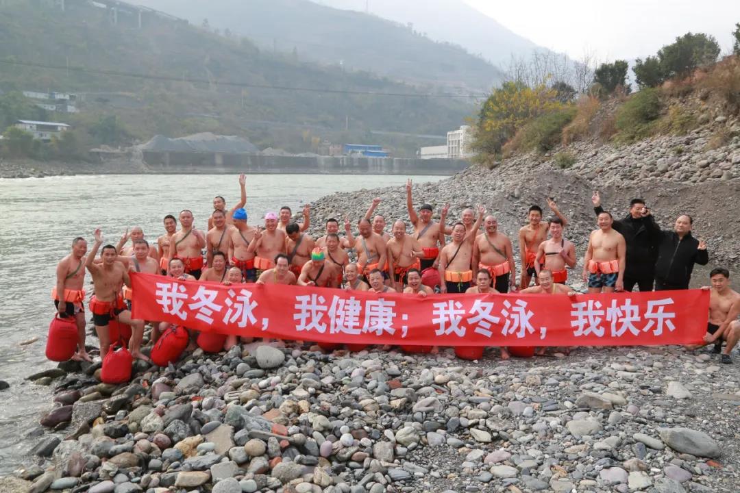 近日,在金口河区大渡河畔,40余名冬泳爱好者进行了一场严寒挑战赛。