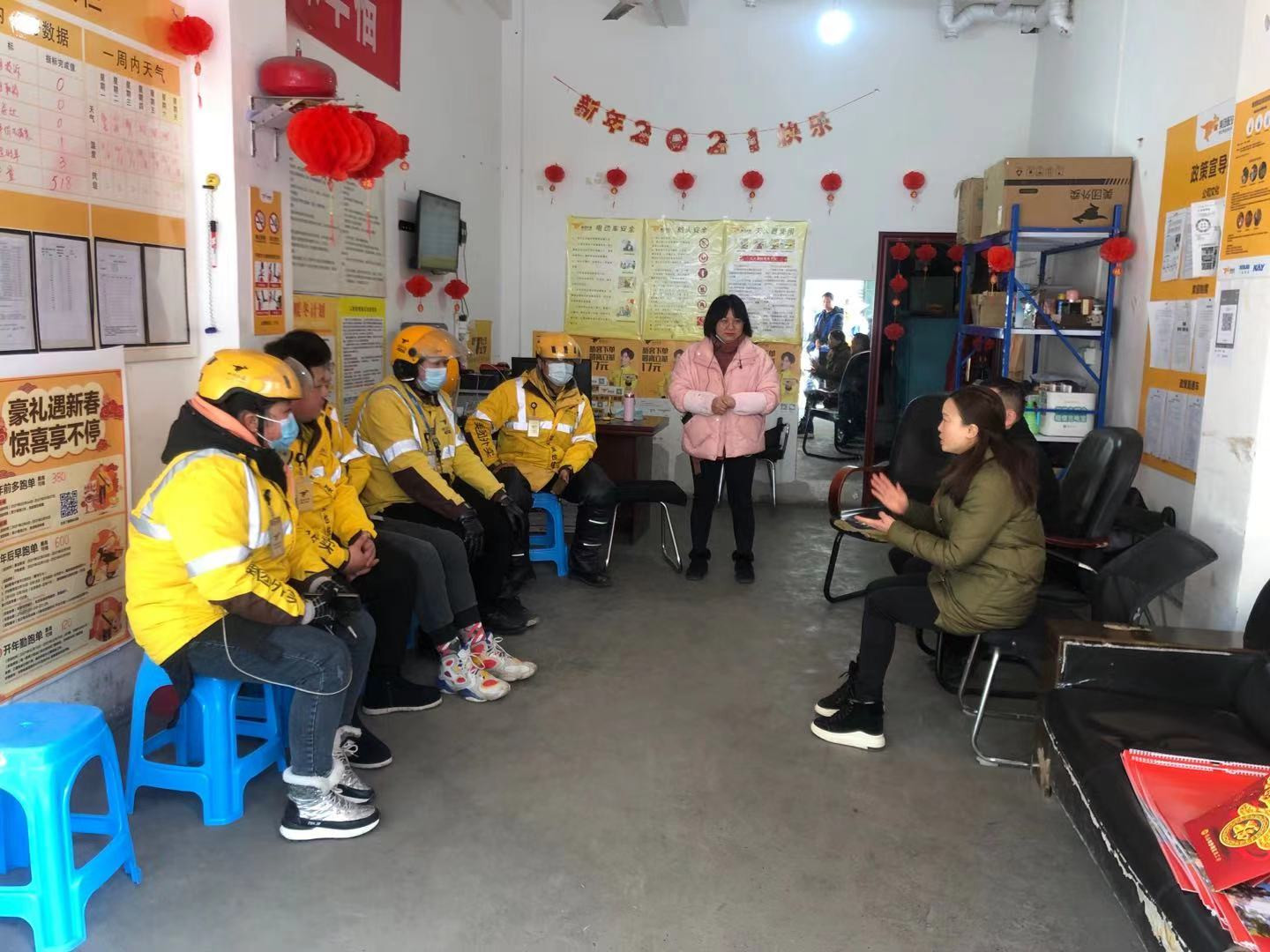 职工志愿者对快递人员进行座谈慰问