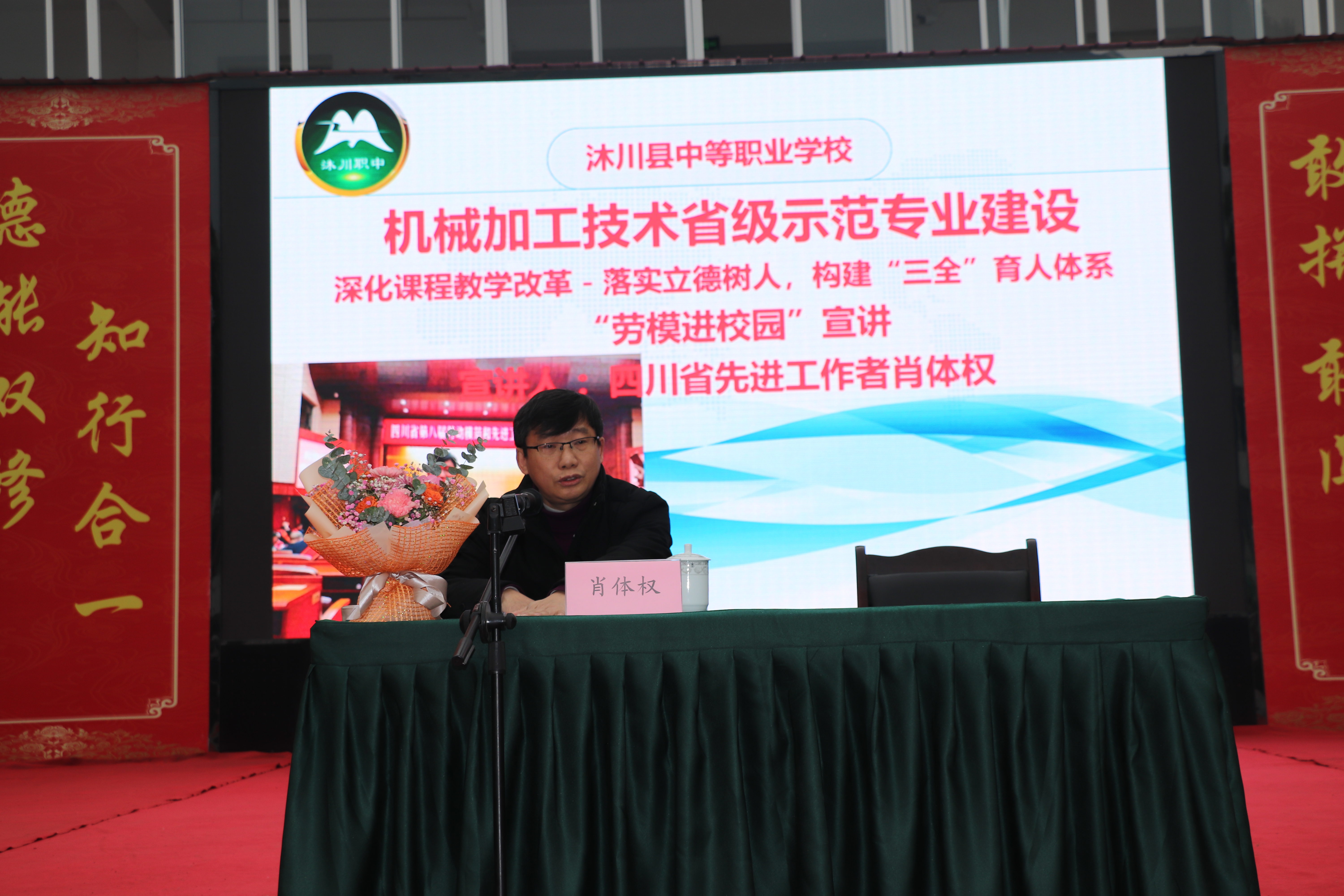 为大力弘扬劳模精神,进一步培育和践行社会主义核心价值观,让劳模精神厚植校园,1月15日,沐川县总工会“弘扬模范精神 争当时代新人”劳模进校园宣讲活动在沐川县职业中学举行。