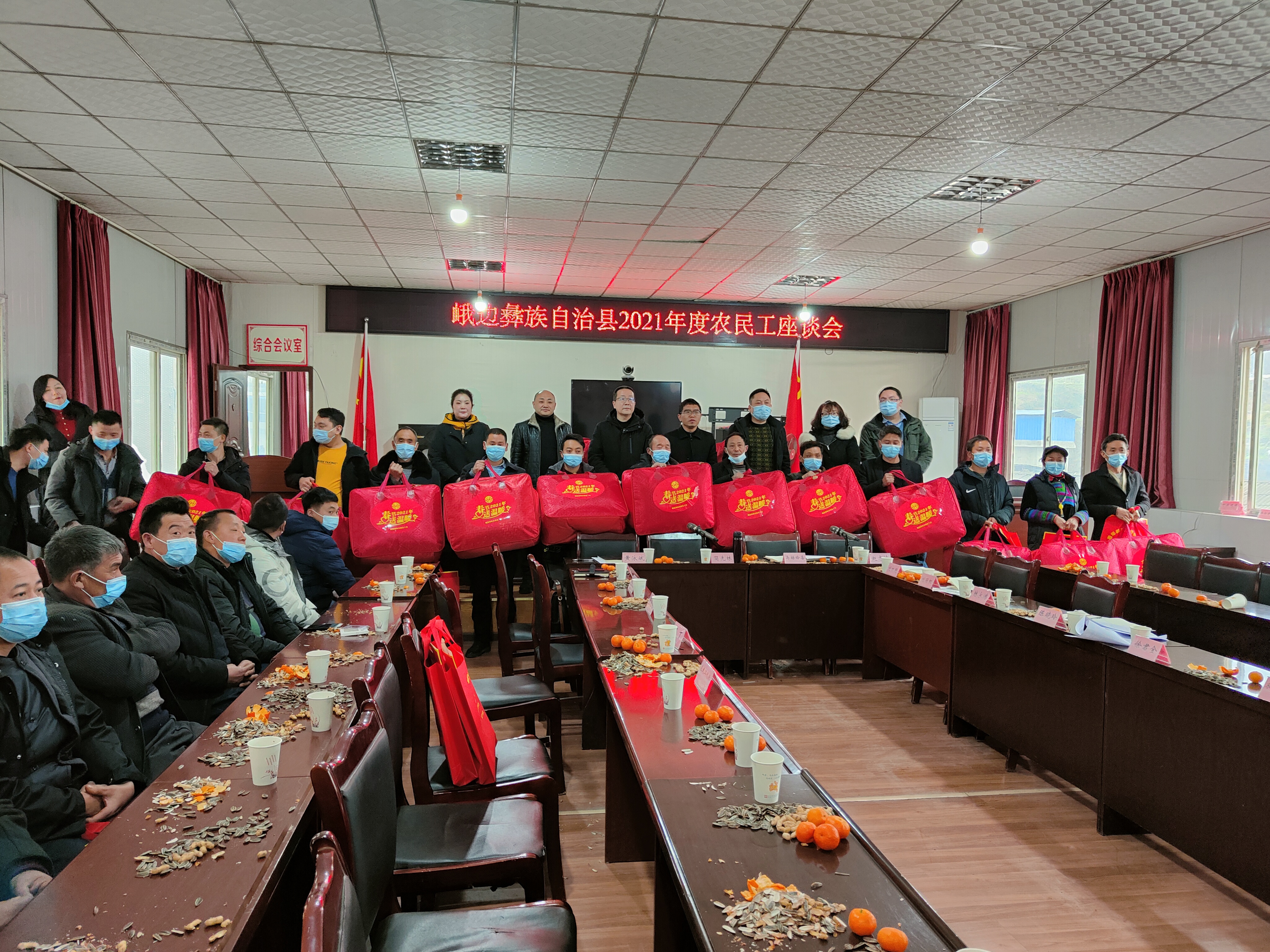 最后,简先林、玛赫给喜等向30名参会农民工发放了慰问品。