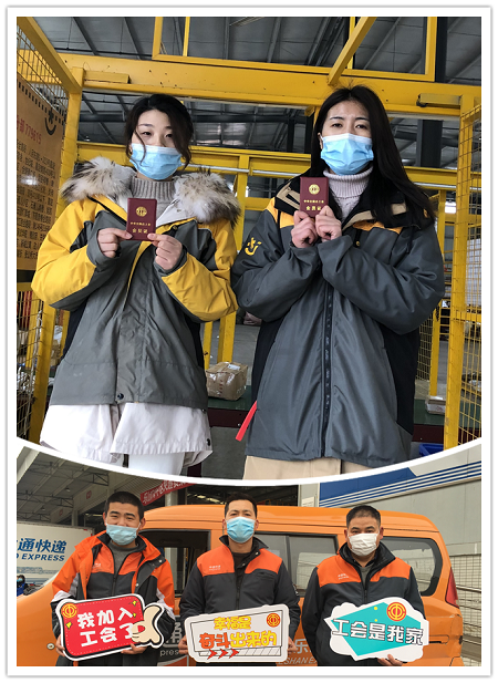 慰问组一行为快递员工、货车司机送去了慰问品和“温暖包”,并为中通、韵达等7家快递公司新入会的员工代表颁发了工会会员证。