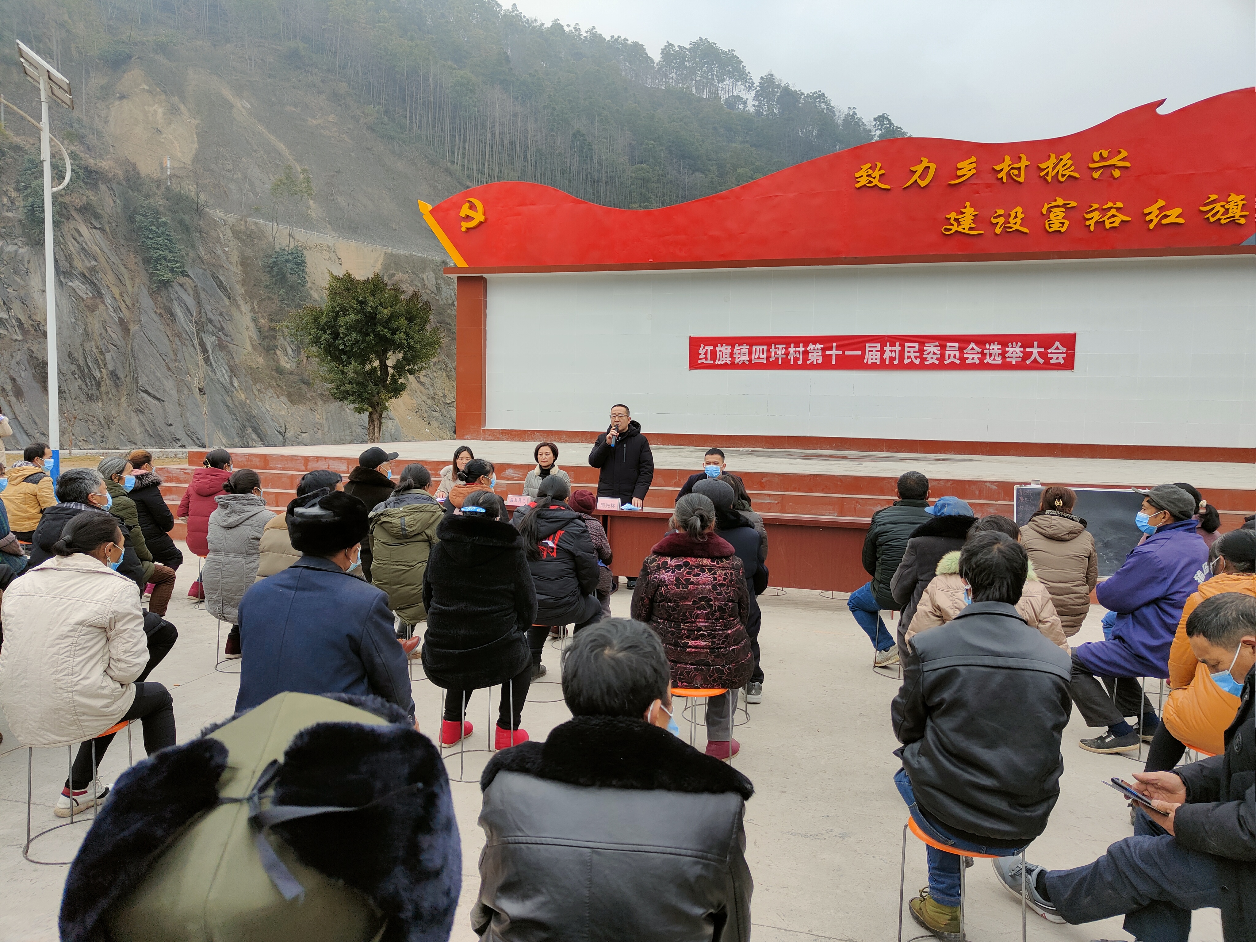 简先林向参会群众宣讲,2021年是建党100周年,是实施“十四五”规划开局之年,县上最近才开完“两会”,确定了“18345”发展思路,现在进行的村民委换届选举就是要选好、选强带动我们村民发展的火车头,在接下来的乡村振兴工作带领我们有更好的发展,望各位乡亲慎重的投出自己神圣的一票。