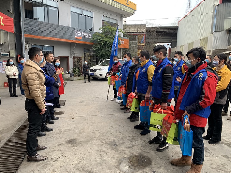 随后先平和市总工会负责人一道将慰问物资发放到快递行业职工手上,并为快递行业职工志愿者服务队授旗、发放志愿者服装。先平感谢广大“快递小哥”在抗击新冠疫情方面做出的贡献,向他们致以节日的慰问,希望他们在搞好本职工作同时,度过一个安乐祥和的新春佳节。
