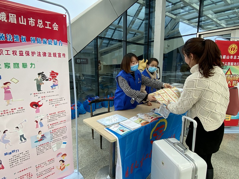 同时,女职工志愿者走进车站、社区等为广大女性群众发放“女职工劳动保护特别规定”、“妇女儿童维权”服务手册、“女职工保障计划”等依法维权、预防家庭暴力的宣传资料。
