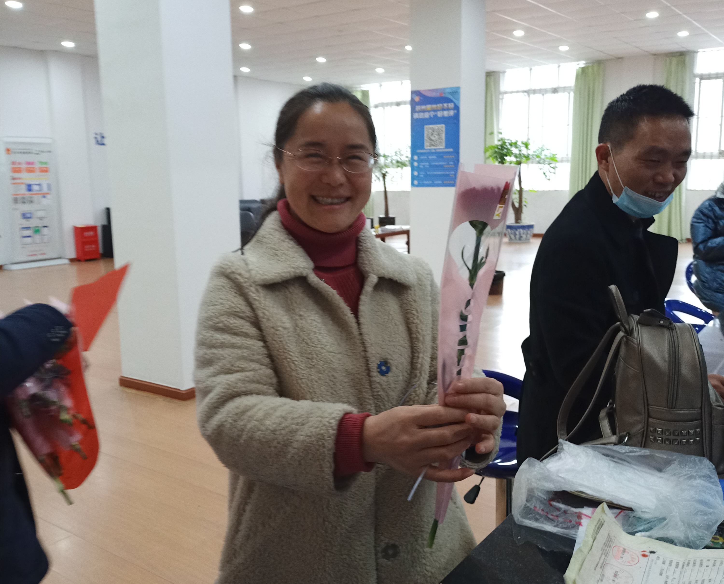 三是开展“特别的花 给特别的你”送花活动。在“三八”国际妇女节当天,局长罗国建代表机关全体男职工,为公共服务大厅、局机关每一位女职工及男职工家属送上了一朵美丽的康乃馨,祝福女职工们节日快乐,平安健康。