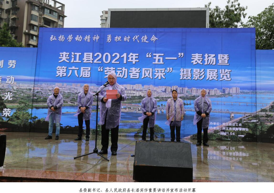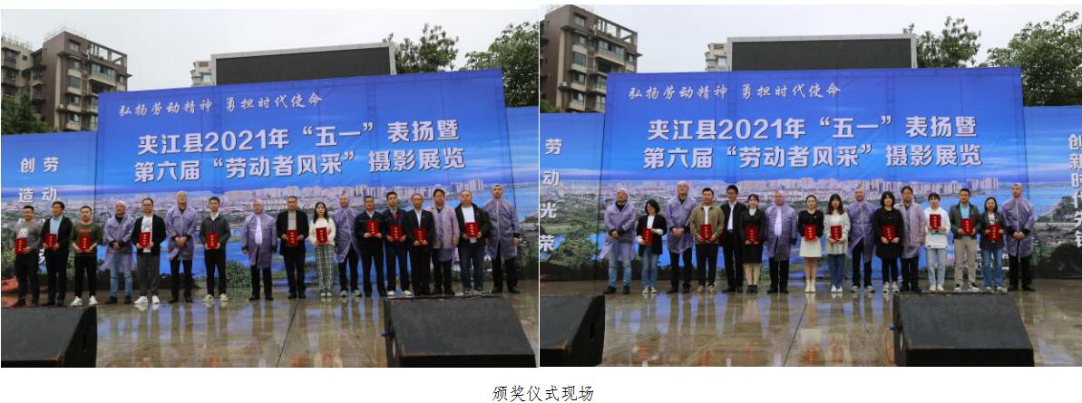 4月28日,为庆祝中国共产党成立100周年,在第131个“五一”国际劳动节来临之际,由夹江县总工会主办、夹江县摄影家协会协办的夹江县2021年“五一”表扬暨第六届“劳动者风采”摄影展在夹江广场隆重举行。