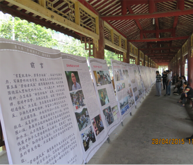 “劳动者风采”摄影展,作为夹江县总工会的职工文化品牌,到目前为止,已连续举办五届。本届摄影展于4月27日在县总工会职工活动中心揭幕开展,4月28日至5月15日在县城中心文化长廊向全县人民展出,5月15日后还将走进企业、学校、部队等进行广泛的宣传展出。