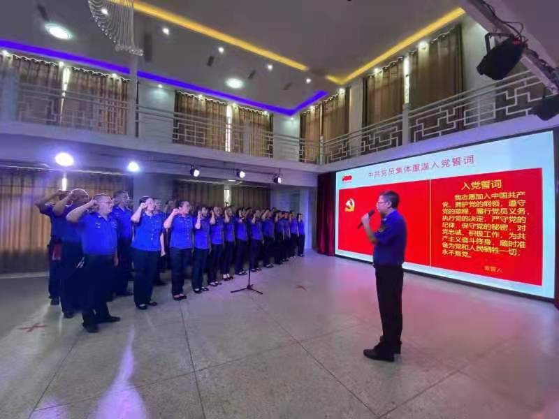 6月29日下午,中共五通桥区综合行政执法局直属机关委员会、五通桥区综合行政执法局工会委员会联合开展“我心向党,立足岗位作贡献”活动,以铿锵的誓言、嘹亮的歌声,隆重庆祝中国共产党100年华诞。