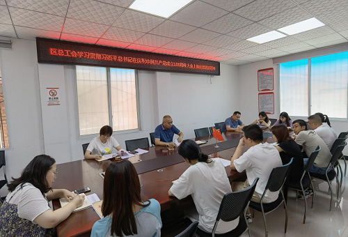最后,刘久益强调:一是要深化思想武装,深刻把握习近平总书记的讲话内涵;二是要奋进新征程,扎实推进习近平总书记讲话入脑入心;三是要学思践悟,深刻领会中国共产党的初心使命;四是要突出特色,掀起工会系统的学习热潮。