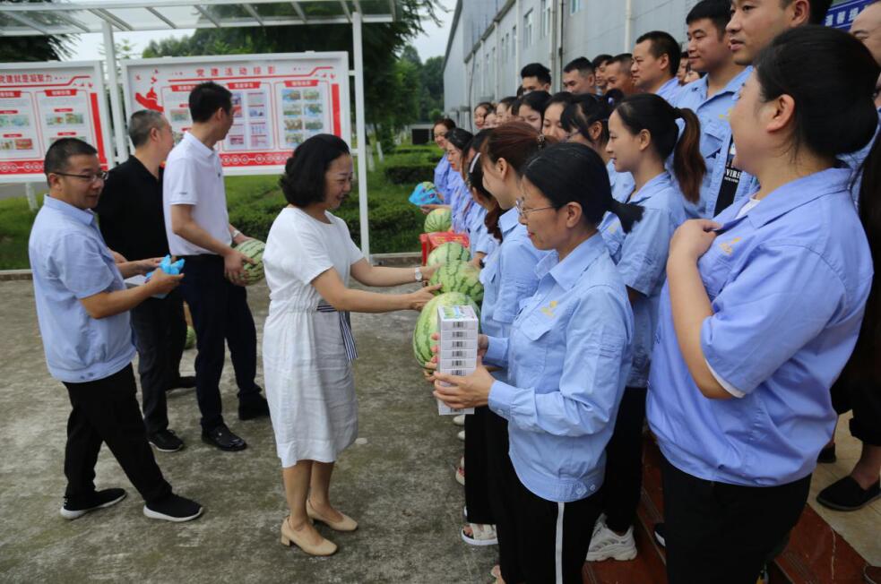 夏日炎炎,持续高温。为切实做好职工安全生产和夏季防暑降温工作,7月20日,乐山市总工会党组成员、副主席兰宁一行,带着对高温一线职工的牵挂与关心,深入夹江县新万兴碳纤维复合材料有限公司开展“夏送清凉”活动,慰问高温下坚守一线职工。