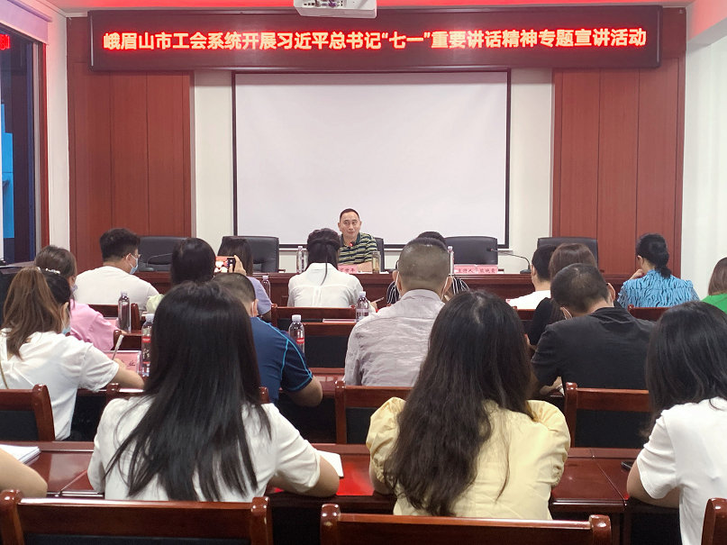 8月25日,峨眉山市委宣讲团第五分团到峨眉山市总工会开展习近平总书记“七一”重要讲话精神专题宣讲活动,全市基层工会主席及市总工会全体职工40余人参加。