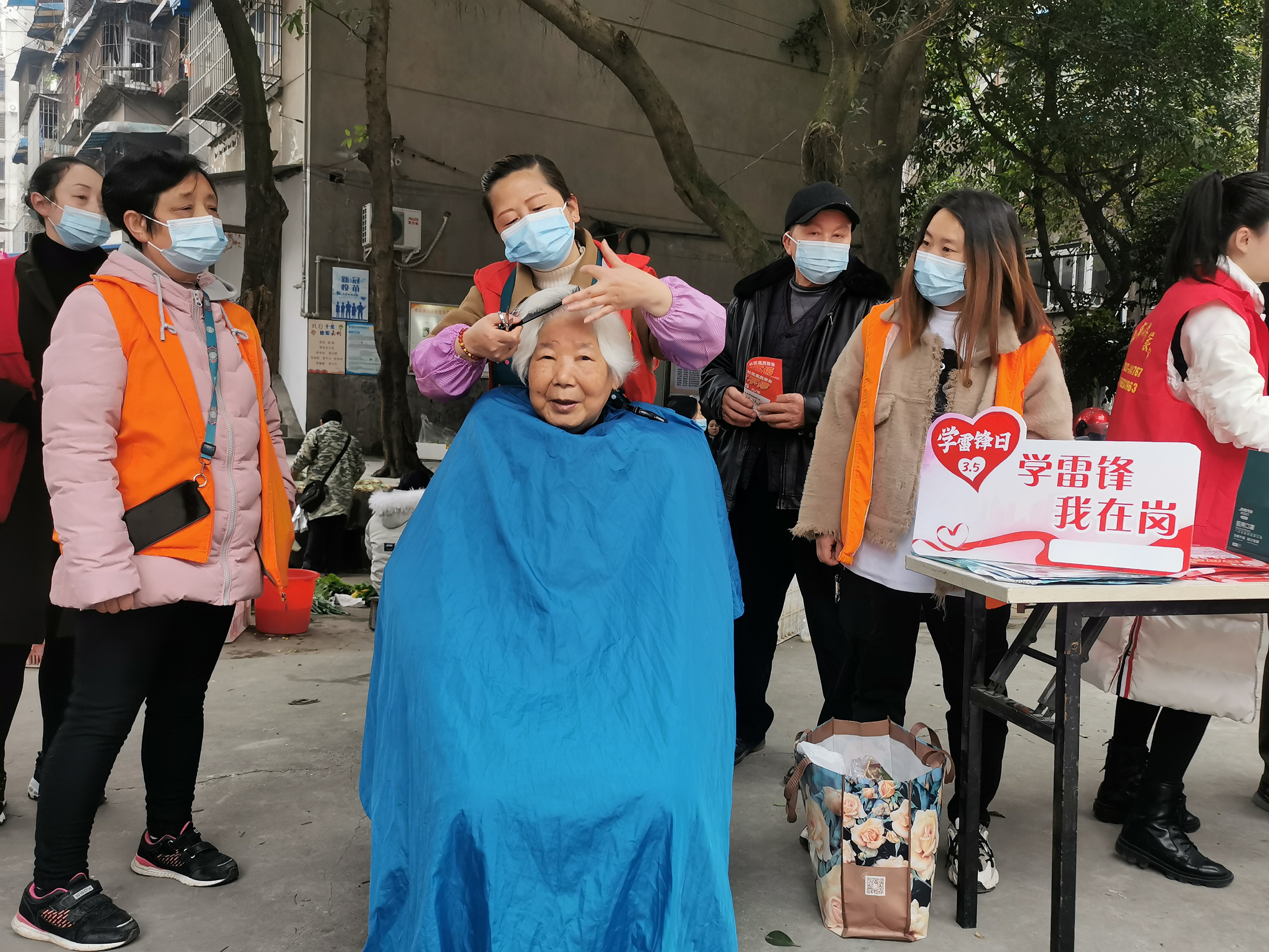 活动现场热闹非凡,桂花楼社区工会组织辖区内的职工志愿者为职工群众义务修剪头发、磨菜刀、发放资料等。职工志愿者们的各项暖心服务,吸引了很多职工群众参与并得到了一致好评。