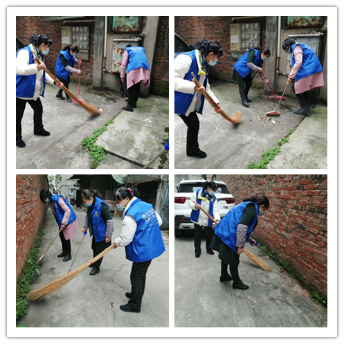 (城东社区工会志愿者对三无小区进行清扫)