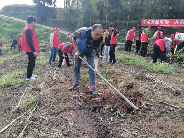 3月11日,在第44个植树节来临之际,牛石镇机关党支部、龚电总厂运行维护处党总支部和龚电生产综合处党支部共同开展“企地党建联动·共同植树造绿”职工志愿植树活动,通过种植初心树、同寄初心语、共守使命林,以实际行动为联谊活动增色添彩。半天时间,一颗颗翠绿的树苗立于田间迎风摇曳,焕发出勃勃生机,形成一道靓丽的风景线。