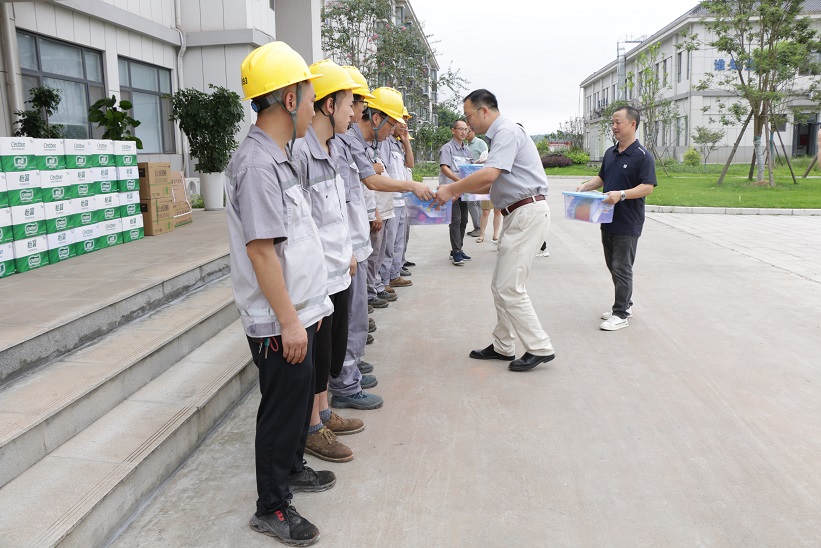 时值盛夏酷暑,天气持续高温。7月24日,犍为县委常委、县总工会主席周武民率县总工会领导班子一行先后深入万华禾香板业有限公司、凤生纸业科技股份有限公司、峨山阀门有限责任公司、乔丰科技公司,看望慰问坚守一线的工作人员,为他们送上防暑降温物品,并通过他们向各行各业奋战在高温一线的劳动者表示问候。