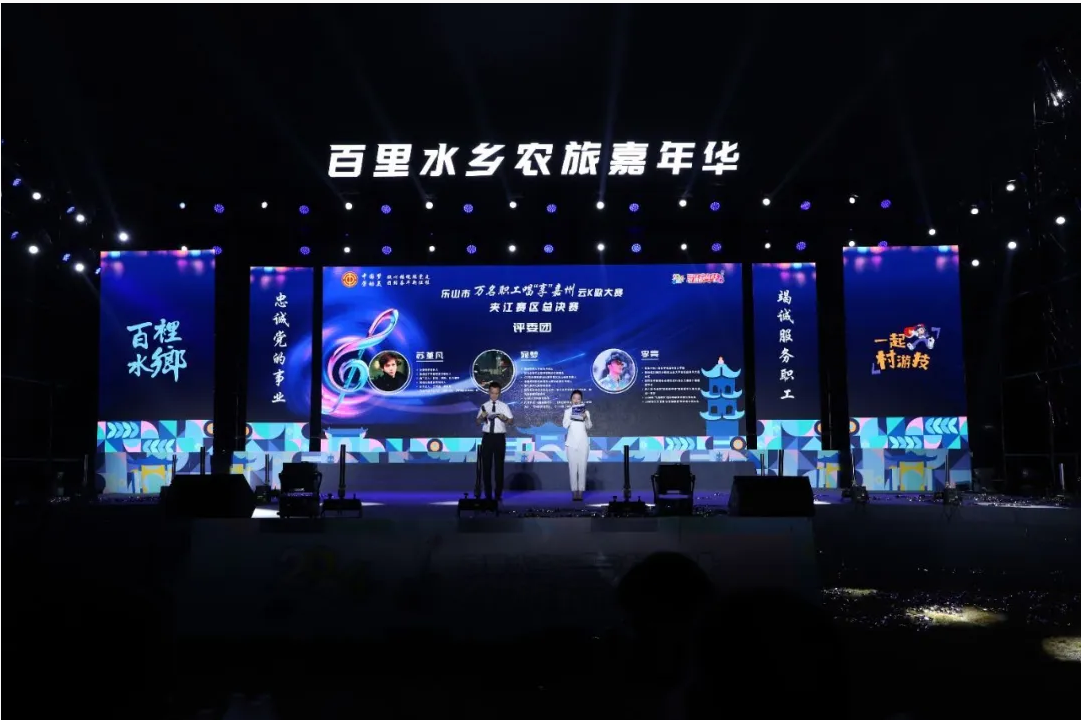 8月25日,乐山市万名职工唱“享”嘉州云K歌大赛夹江赛区总决赛在甘江镇万华河湿地公园火热上演。