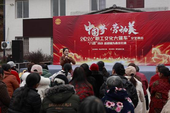 近日,乐山市总工会2026年“职工文化大篷车”文艺演出走进井研县研经镇。至此,从1月上旬至3月中旬,标志着乐山市总工会以“中国梦·劳动美”为主题的2026年元旦、春节期间“职工文化大篷车”文艺演出“八进”活动完美收官。