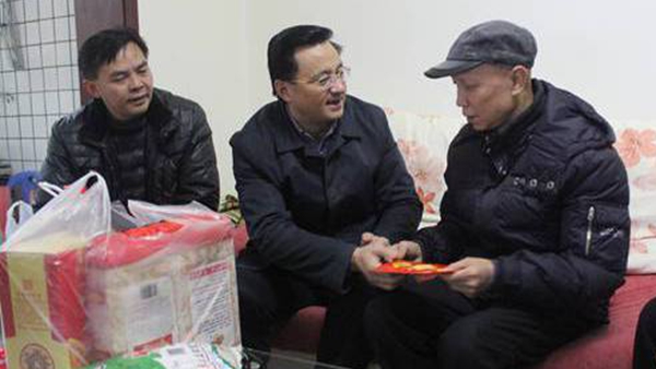 1月20日,沙湾区委书记伍定率区委办、区总工会负责人到沫江办事处老矿社区和草坝社区,带着区委、区政府的深情厚意,看望慰问困难职工和贫困老党员,向他们送去党的关怀,送上节日的问候和祝福。
