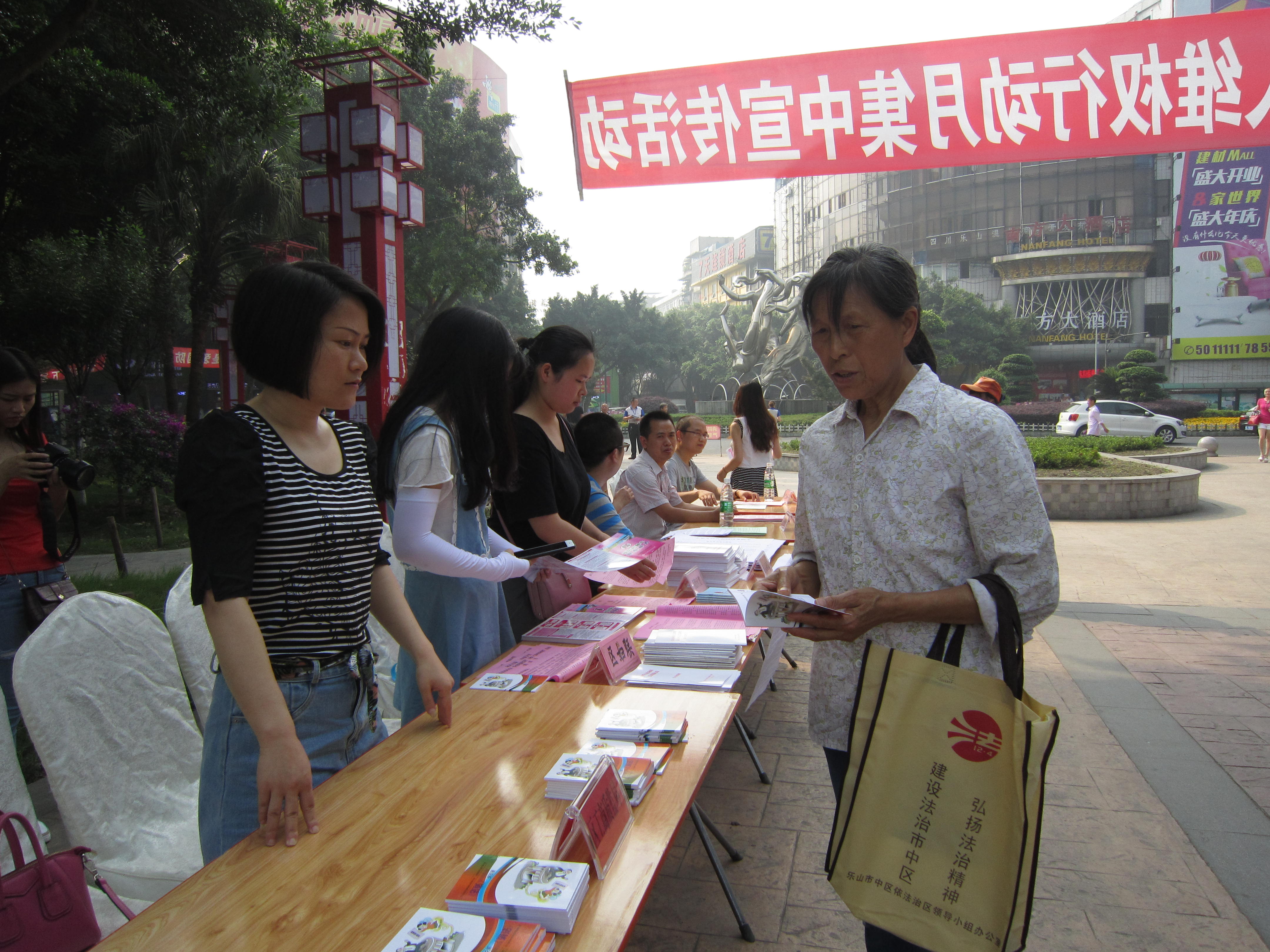 6月1日,乐山市市中区总工会组织30名职工志愿者参加了团区委在海棠广场举行的以“弘扬法治精神,点亮美好未来”为主题的未成年人维权行动月集中宣传活动。