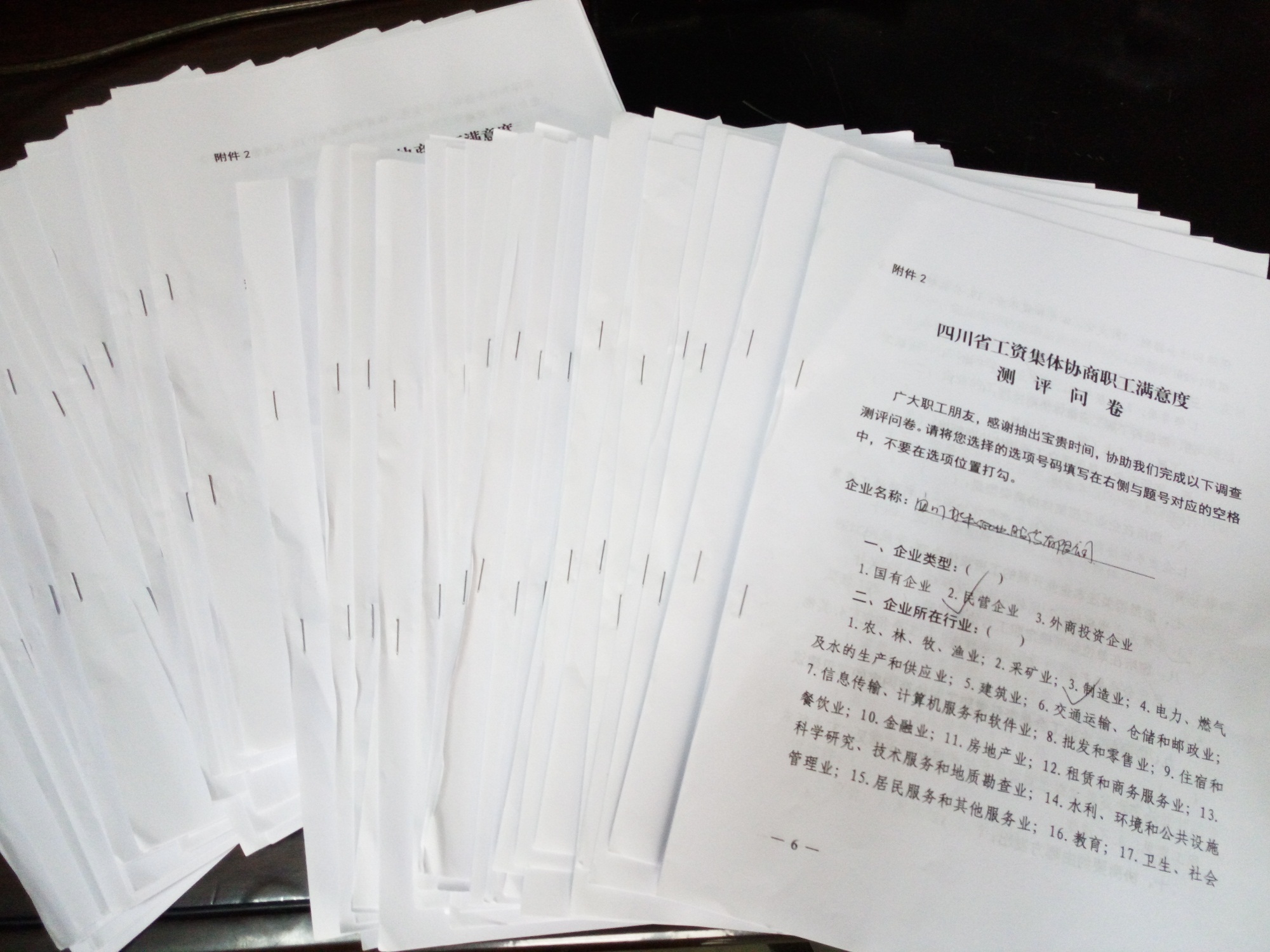 为进一步做好新常态下工资集体协商提质增效工作,沐川县总工会积极开展工资集体协商职工满意度调查测评工作,分别深入四川永丰纸业股份有限公司、四川森态源生物科技有限公司开展调查测评,发放测评问卷表90余份。参评企业工会积极配合,认真组织企业管理人员、中层干部、工会干部、一线职工参加了测评。
