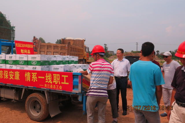 7月21日至27日,夹江县委常委、县总工会主席石翠莲、县总工会党组书记、常务副主席郑友军带队深入新万兴碳纤维、建翔陶瓷、金辉卫浴、外校建筑工地等12家企业,开展以“走基层、送清凉、保安康”为主题的夏季送清凉活动,为高温一线职工送去了矿泉水、藿香正气水和白糖等5万余元的防暑降温物资和有关《职业病防治法》、《职业病防治宣传手册》等法律法规宣传资料1000余份。并看望了奋战在一线的职工,叮嘱他们在高温下作业一定要注意防暑降温。要求企业做好防暑降温工作,有效预防各类安全事故,保障职工的生命安全和身体健康。同时对企业的安全生产、职业病防治、高温作业劳动保护、女职工特殊权益保护、防暑降温饮品的落实进行调查了解,促进企业增强履责意识,维护职工的合法权益。