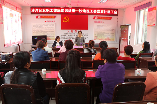 为进一步宣传贯彻《女职工劳动保护特别规定》,增强女职工的自我保健意识,普及女性生理健康知识,促进女职工的身心健康。10月10日,沙湾区总工会在嘉农镇嘉农社区举办了女职工健康知识讲座,共50多名社区企业女职工参加了讲座。