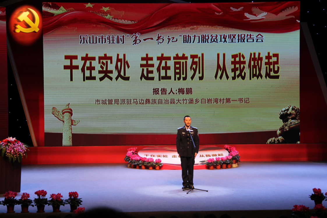 本次报告会的主题是:干在实处,走在前列,从我做起。市中区水务局派驻市中区青平镇宝兴村“第一书记”王乐邑、市城管局派驻马边彝族自治县大竹堡乡白岩湾村第一书记梅鹏等,11名从各县(市、区)遴选出驻村“第一书记”代表,在会上作脱贫攻坚工作报告。他们结合自身工作实际,深情报告了驻村以来开展脱贫攻坚工作情况和取得的工作实绩,生动再现了驻村扶贫工作中的点滴,共同分享了驻村扶贫路上的责任、使命、光荣、感动和感悟。他们是全市469名驻村“第一书记”的典型代表,集中展现了广大驻村“第一书记”以实际行动践行“干在实处、走在前列”的工作取向和不忘初心、牢记使命、深扎基层、服务困难群众的宗旨意识;充分彰显了驻村“第一书记”面对扶贫工作中的艰难困苦,勤于学习、善于思考,勇于创新、大胆实践,坚韧不拔、艰苦创业的优良作风;生动展示了我市实施精准扶贫、精准脱贫战略,贯彻“五个一批”、“六个精准”和干部帮扶“五个一”工作要求,精准施策所取得的丰硕成果。