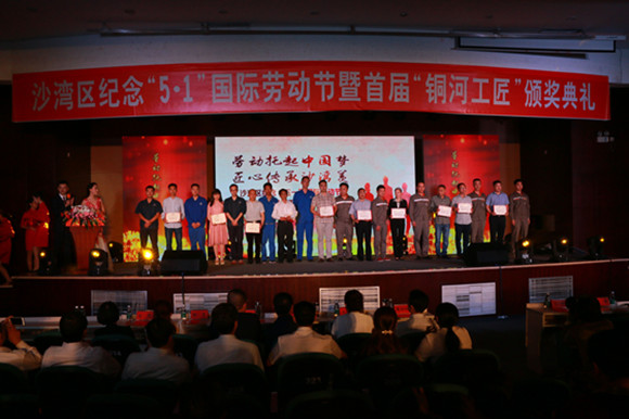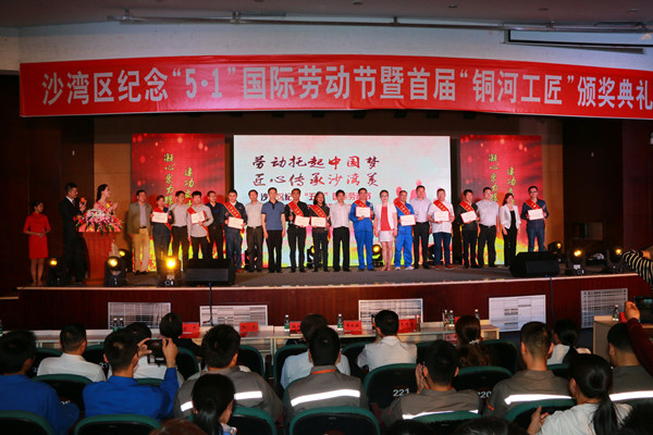 5月4日,沙湾区举行纪念“五一”国际劳动节暨首届“铜河工匠”颁奖典礼,10名优秀人才被授予“铜河工匠”荣誉称号。区委书记袁仕伦,市总工会常务副主席王学东,区人大常委会主任文明,区政协主席黄大敏,区委常委统战部长总工会主席赵彬、区委常委宣传部长魏阳东,区人大常委会副主任梁建,副区长干世伦,区政协副主席钟少兵参加活动并为获奖者颁奖。