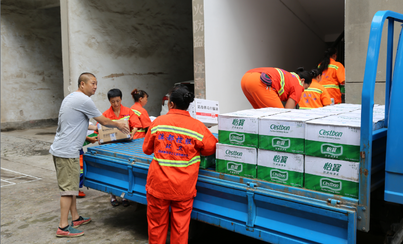 7月24日,烈日炎炎,夹江县总工会和县城管局领导来到县环卫所,为环卫职工送去矿泉水、藿香正气水、清热解毒口服液、白糖等消暑降温物质,并为“夹江县环卫职工帮扶工作站”授牌,标志着该工作站正式成立。