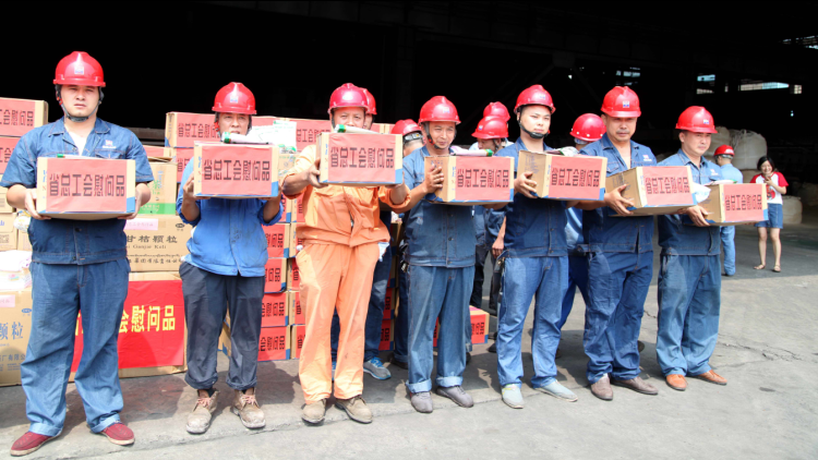 7月27日,时值酷暑高温三伏天,四川省总工会党组成员、副主席李茂林率队来到德胜钒钛公司,为高温天坚持工作的一线职工们,送去防暑降温清凉物品和工会“娘家人”的关怀。市总工会党组书记、常务副主席王学东、沙湾区委书记袁仕伦和区委常委总工会主席赵彬陪同参加送清凉活动。