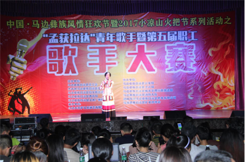 7月28日下午2:30, 马边彝族自治县人民礼堂座无虚席,气氛热烈。 中国 . 马边彝族风情狂欢节暨第二届小凉山火把节系列活动 之 “孟获拉达”青年歌手暨第五届职工歌手大赛 在此举行复赛。
