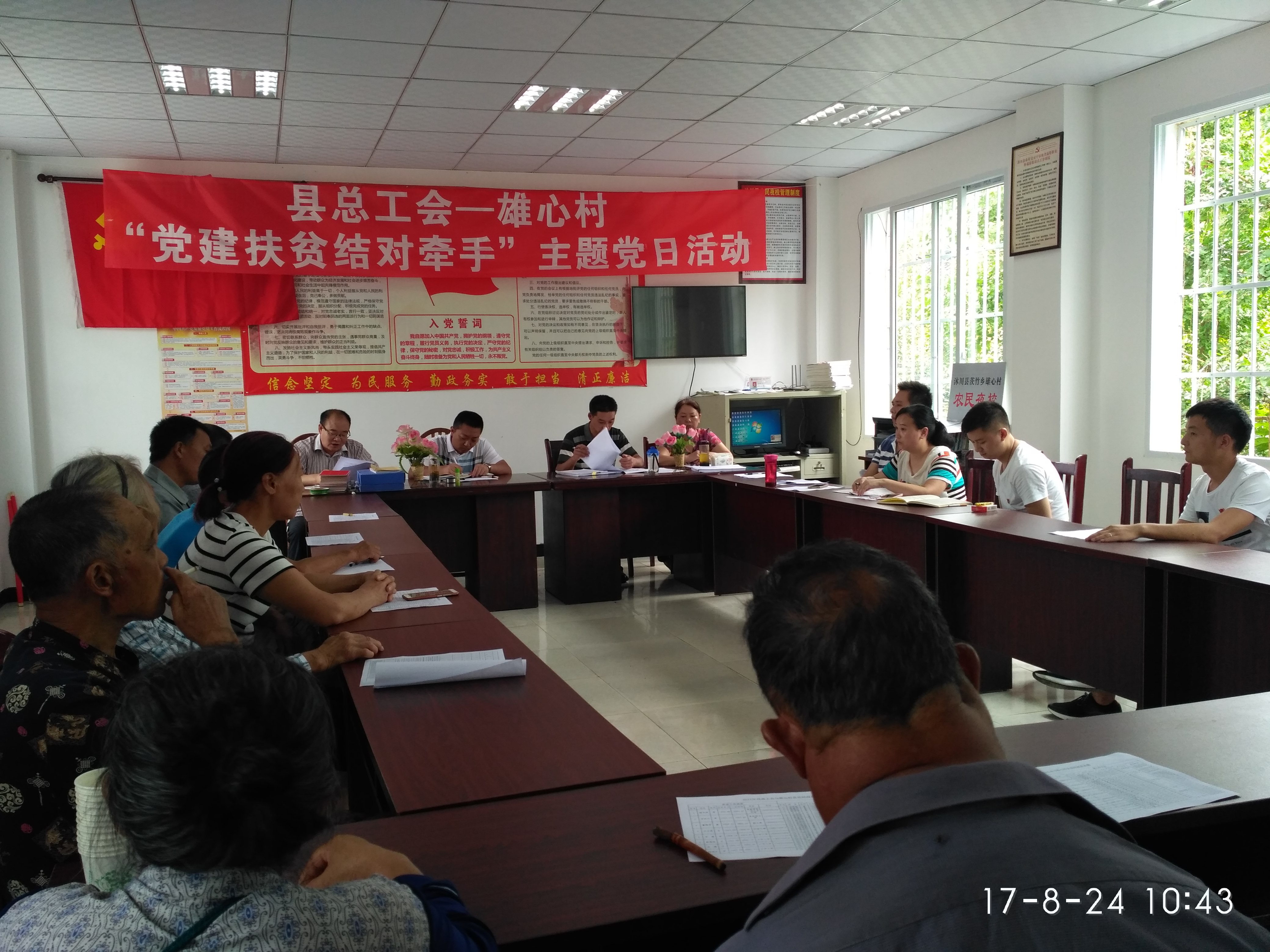 按照省、市、县关于“城乡党建结对共建”的部署和要求,2017年8月24日,沐川县委常委、县总工会主席杨文波率县总工会全体党员到茨竹乡雄心村开展了“党建扶贫结对牵手”主题党日活动。