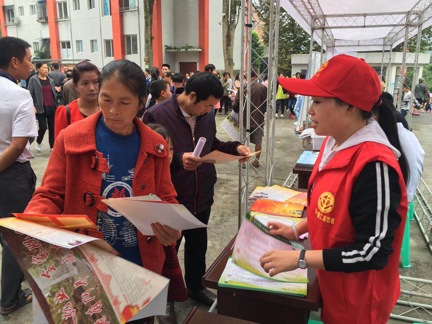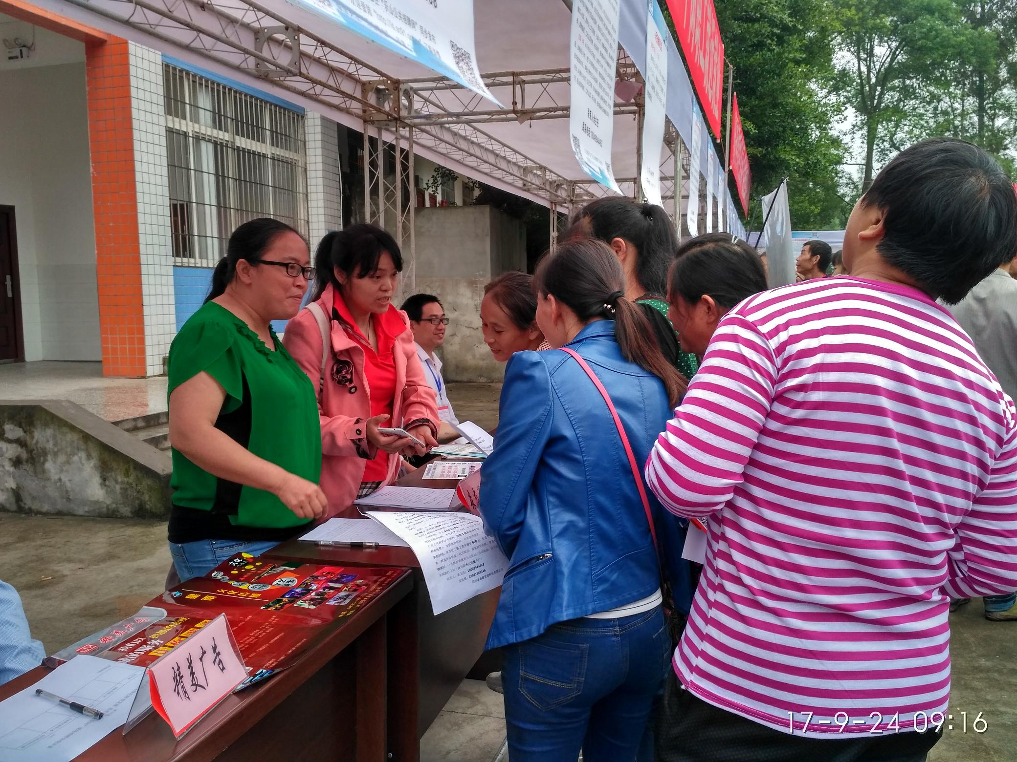 招聘会现场,县人社局、扶贫移民局、工会、文广、卫计、外宣等多部门分工协作,为求职劳动者提供多方面的政策咨询,大力宣传就业扶贫政策,张贴宣传海报2000多张,发放宣传资料18000多份。县总工会职工志愿者积极派发工会法律常识、职工保险等维权宣讲资料800余份。