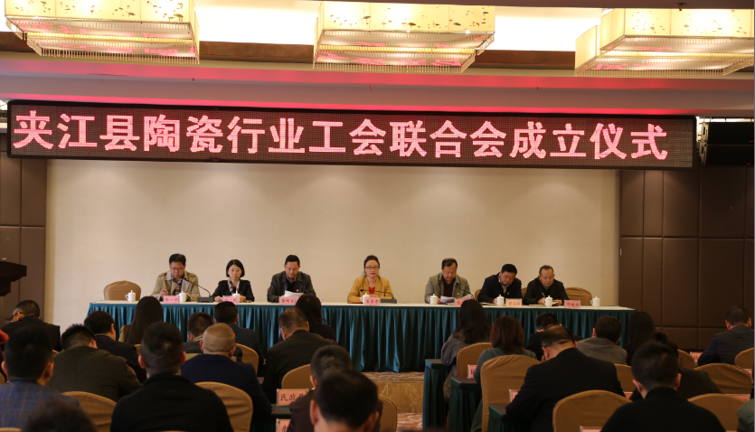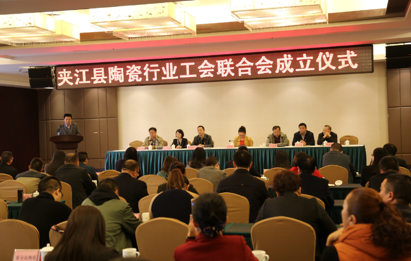 会议由县委常委、统战部部部长董明龙主持,县委常委、组织部长、县总工会主席刘永康宣读了《夹江县总工会关于成立夹江县陶瓷行业工会联合会的批复》。根据《中华人民共和国工会法》、《中国工会章程》的相关规定,经县总工会研究决定,同意成立“夹江县陶瓷行业工会联合会委员会”。根据夹江县陶瓷行业工会联合会会员大会选举结果,工会委员会委员由宁安全、刘健、江毅、刘钊、余杨、汪绪发、周学强、胡灵、李文仪等九位同志组成,宁安全同志任工会主席,刘健、江毅同志为副主席。