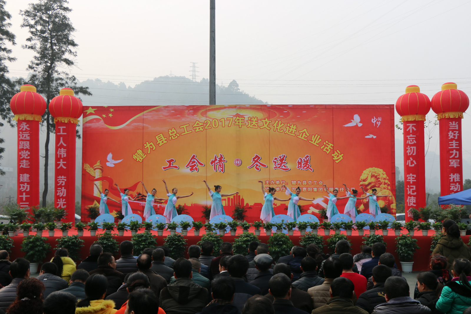 岁寒送温情,文化润心田。12月27日,以“工会情·冬送暖”为主题的犍为县总工会2017年送文化进企业活动在嘉阳集团举行。县委常委、工会主席李俊韬参加活动并致辞,嘉阳集团相关负责人及部分职工、职工家属等1000余人参加活动。