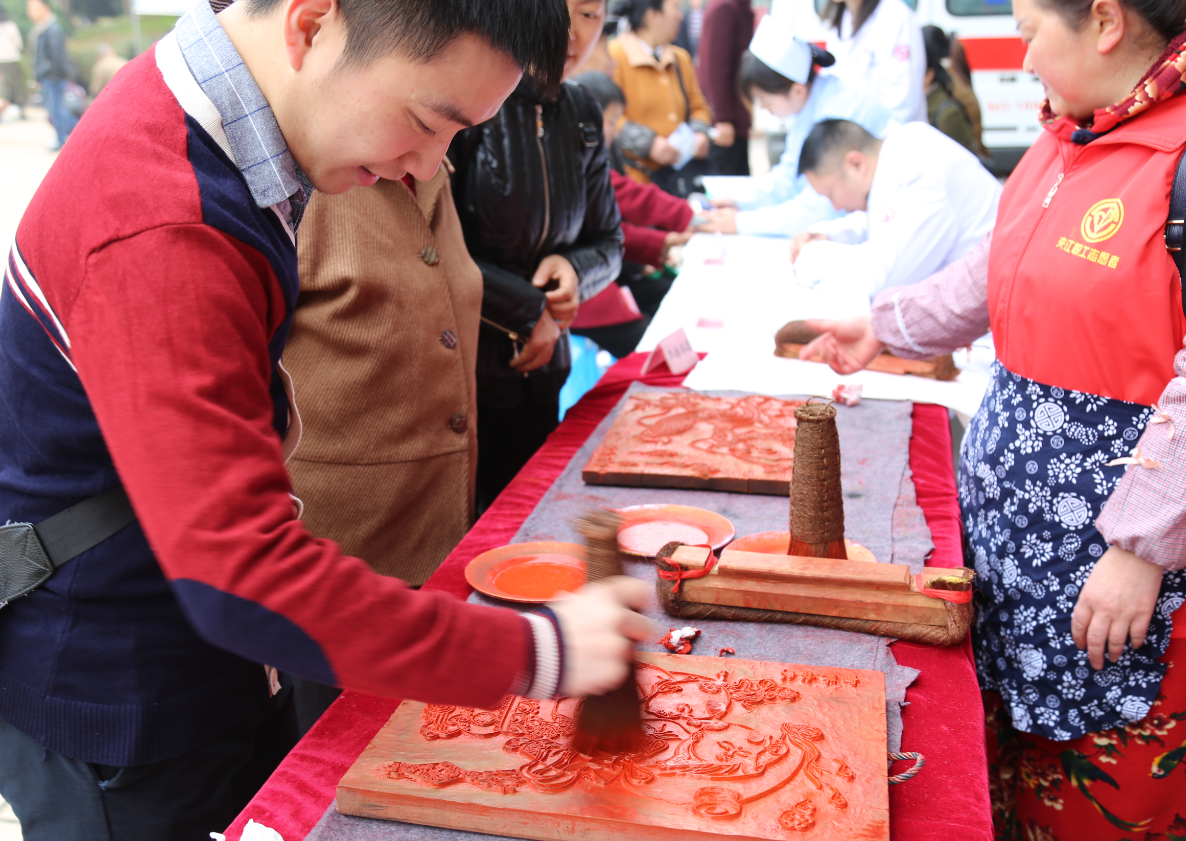 活动现场,志愿者们向群众发放职工维权资料,进行劳动保护、职业病防治、法律维权、创建国家卫生县城、工会会员普惠服务等宣传,同时还开展了义诊、测血压、健康卫生咨询,现场体验夹江木板年画制作等活动。