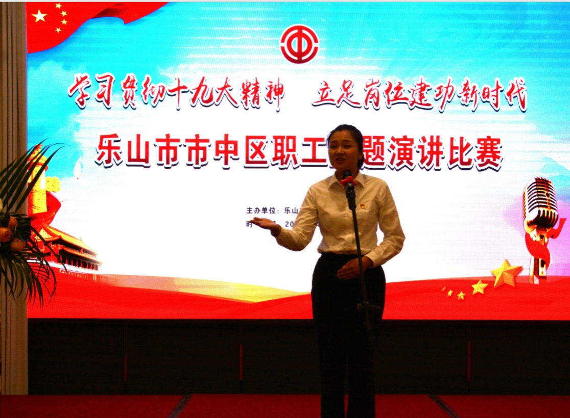 4月25日,由市中区总工会主办的“学习贯彻十九大精神,立足岗位建功新时代”职工主题演讲比赛(决赛)活动在宏远大酒店举行,来自全区乡镇、街道、企事业单位的160名工会干部及职工代表参加了活动。乐山市总工会党组成员、经审会主任程学铭,区委常委、宣传部长刘华东,区人大常委会副主任吴羚出席并为获奖选手颁奖。