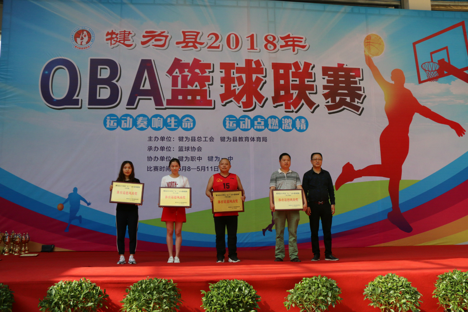 5月11日,犍为县2018年庆“五一”QBA篮球联赛闭幕式暨颁奖典礼在犍为一中举行。
