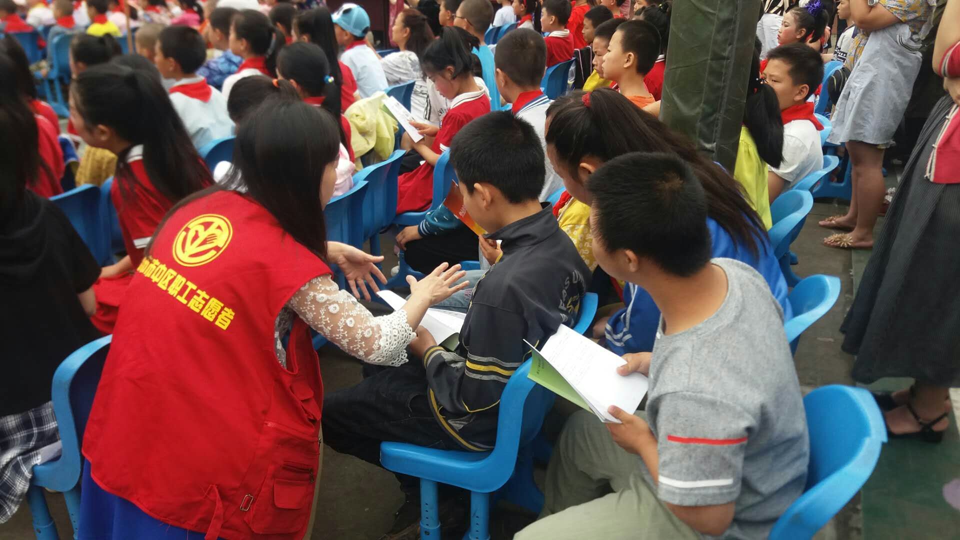 活动现场,职工志愿者们对孩子们进行法律知识宣传,送去了未成年保护和安全等方面的图文书籍,帮助他们从小树立起法律意识、自我保护意识和安全意识。