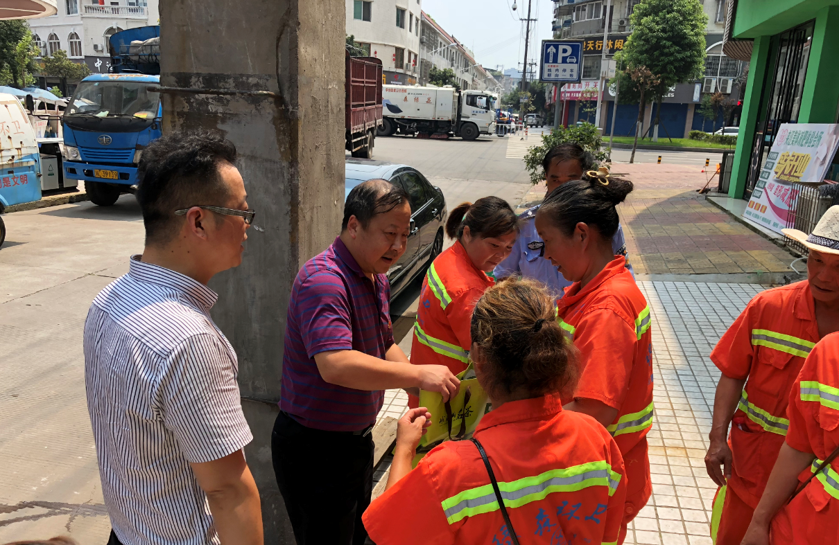 夹江县委常委、县委组织部部长、县总工会主席刘永康参加了“送清凉”活动启动仪式。在绿森环卫公司的启动仪式上,刘永康对高温一线的职工不畏高温、忠于职守、辛勤工作表示感谢,希望他们在坚守岗位的同时注意防暑安全,适当休息、爱护身体,以更好的状态投入到创建国家卫生县城工作中,并强调全县创建国家卫生县城工作进入攻坚期,广大环卫职工任务更加艰巨,责任更加重大,使命尤其光荣。创卫是一场持久战、攻坚战,大家要有信心和毅力,始终坚守岗位,尽心尽力,把本职工作干好,把各自负责的区域卫生维护好,让夹江这个城市更加干净美丽,让我们生活的环境更加美好,共同努力把夹江建设成宜居宜业宜游的人居典范城市。同时要求全县各级各部门、各企事业单位,要切实做好防暑降温工作,改善夏季高温一线作业职工的生产、生活环境,有效预防、控制高温作业引发的中暑和各类事故,保障广大职工的身体健康,及时把党和政府的关怀送给奋战在高温一线的职工,帮助职工度过一个安全、健康、清凉的夏季。启动仪式后,慰问组向绿森环卫公司、岷江环卫公司、双江环卫公司和铭帝铝业送去了矿泉水、藿香正气水、白糖、茶叶等防暑降温物资。