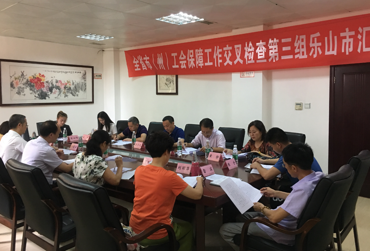 检查组认真听取乐山市、夹江县工会保障工作情况汇报